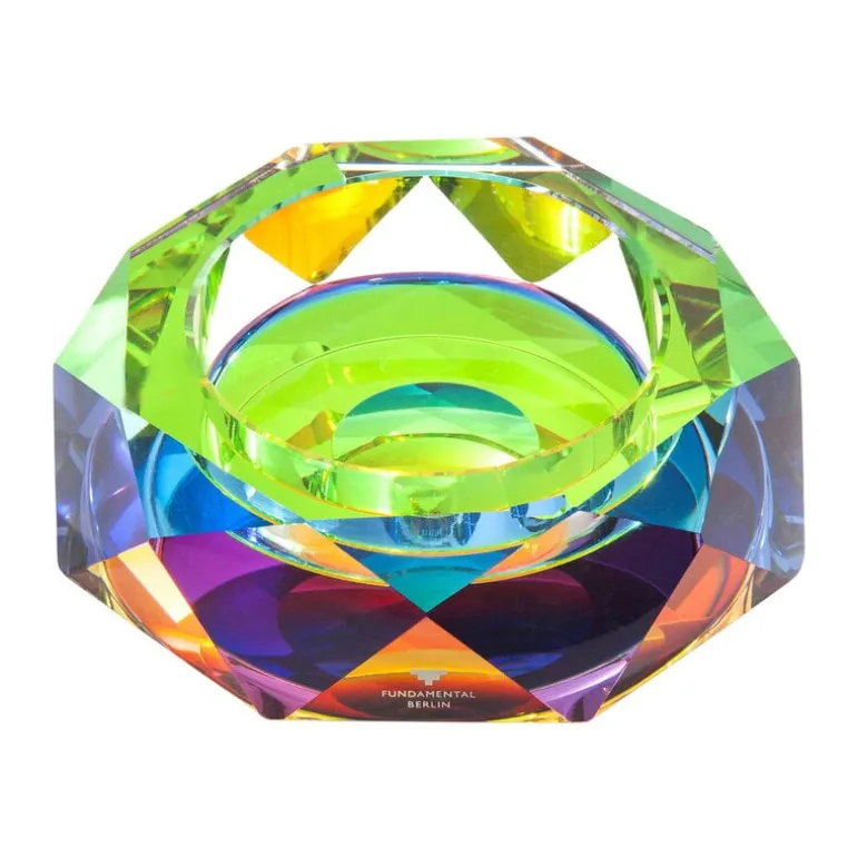 Fundamental Berlin’s Regenbogen bowl brings all the colors of the rainbow into the home décor. The bowl is hand-cut from crystal glass and coated with a special chromatic film to highlight the shades of the spectrum. Use the elegant bowl as a place to store tiny treasures or keep it empty and just enjoy how the light sparkles and shimmers off its shiny surface!
