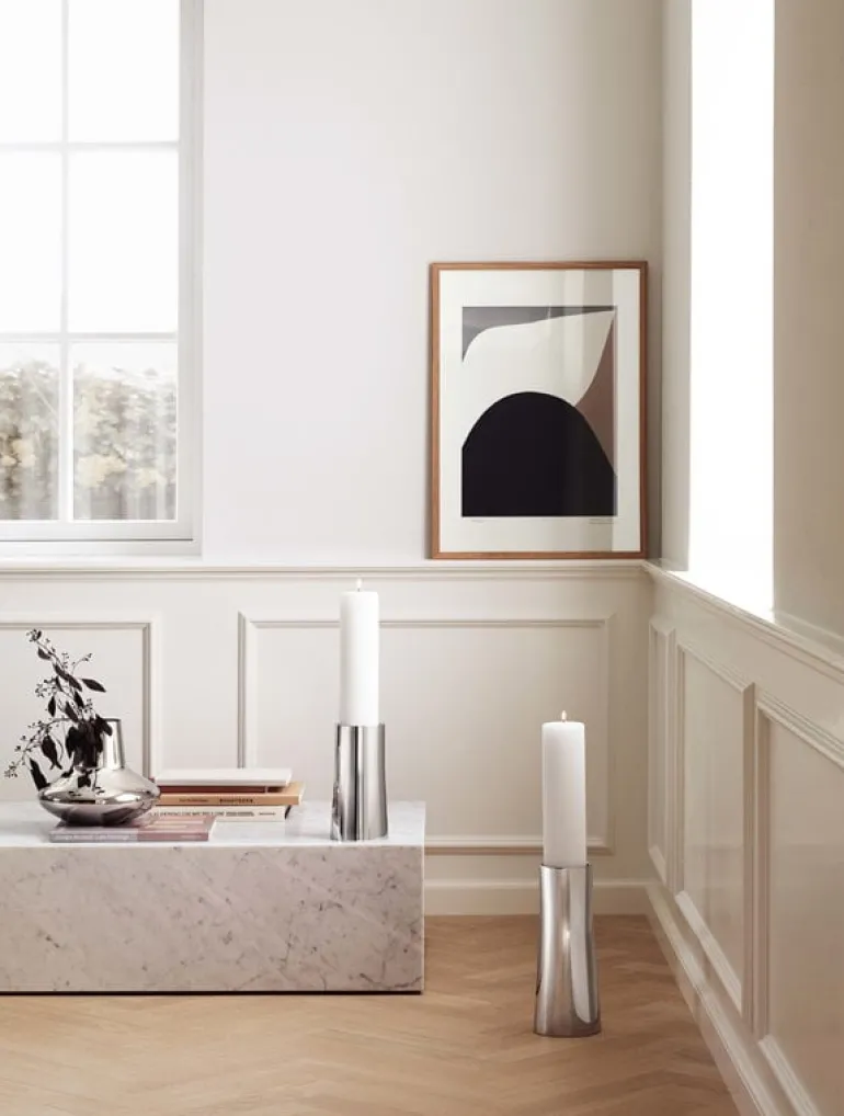 Georg Jensen’s HK vase was designed by the legendary Danish designer Henning Koppel. Featuring freely flowing forms and soft yet precise lines, HK vase gives a stunning base for lush bouquets of flowers as well as minimalist settings of branches. The vase is made of mirror-polished stainless steel.