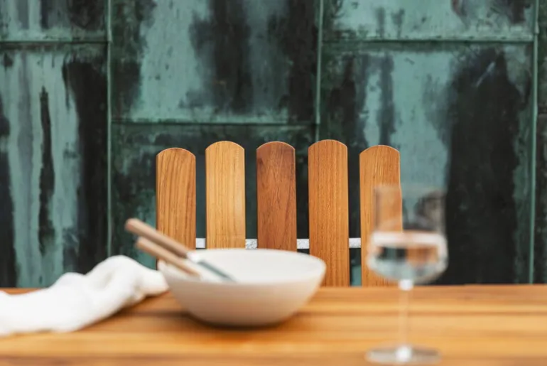 Grythyttan Stålmöbler’s armchair A2 has brought the quality of Swedish design to patios, balconies and gardens since the 1930s – in fact, it was this garden chair that once propelled the success of the Swedish company. Designed by Artur Lindqvist, armchair A2 features a slender, stackable steel tube structure that provides a comfortable, gently rocking seating experience for any outdoor space. This distinctive steel base is a recurring feature in many of Grythyttan Stålmöbler’s chairs. Over time, the galvanized steel parts will acquire a matte surface, while the untreated teak wood will develop a beautiful silver-gray patina.