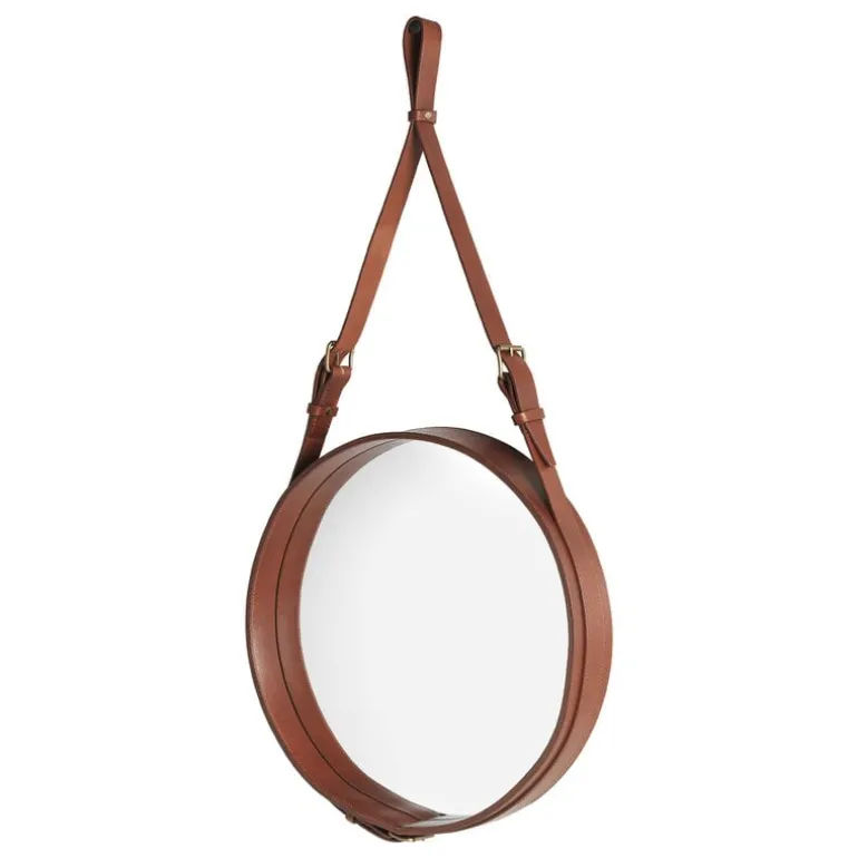 GUBI’s Adnet is an elegant wall mirror made of the most refined materials: the best Italian leather and luxurious brass. In the 1950s, designer Jacques Adnet formed a partnership with the beloved French fashion house, Hermès, and designed a range of leather-covered furniture and interior accessories for them. The Adnet mirror was inspired by these very products. Adnet was one of the first designers to combine metal, glass and leather in furniture.