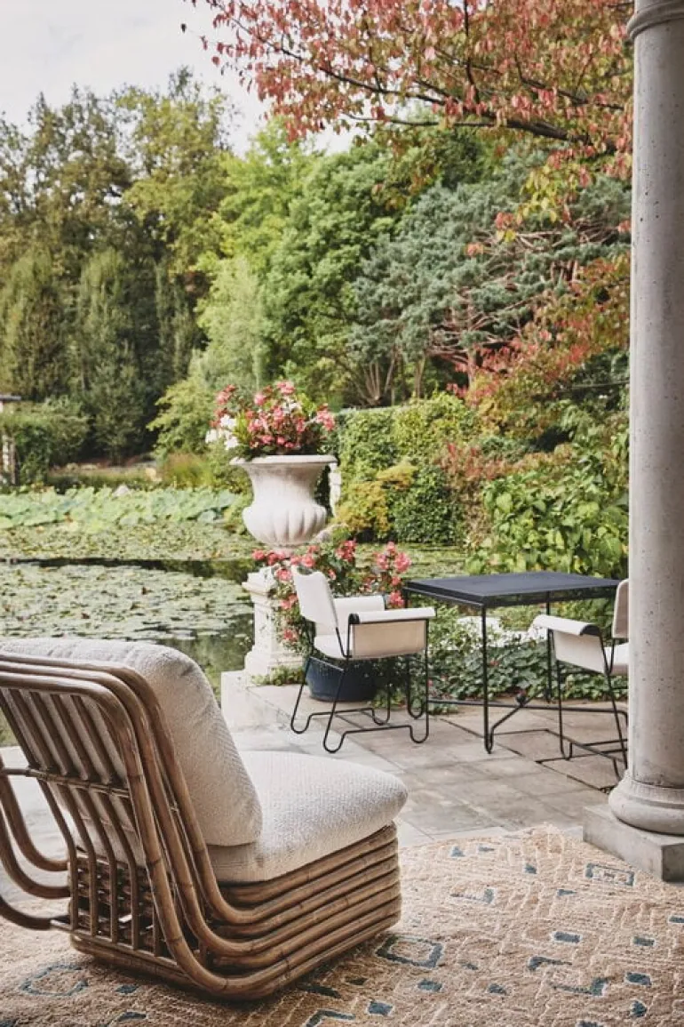 GUBI’s Bohemian lounge chair is a perfect example of designer Gabriella Crespi’s desire to create furniture that seamlessly moves from indoor to outdoor spaces. Made of rattan the lounge chair is suitable for the living room as well as for the balcony or covered terrace or patio – although it is not advisable to leave rattan furniture in the rain or scorching sun. The lounge chair is upholstered in Dedar’s top-quality outdoor fabric with diagonal bouclé-style stripes.