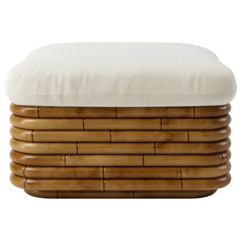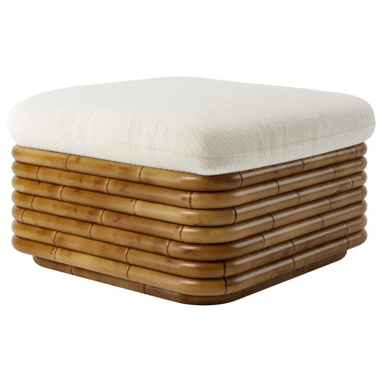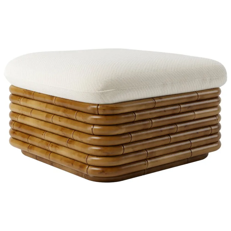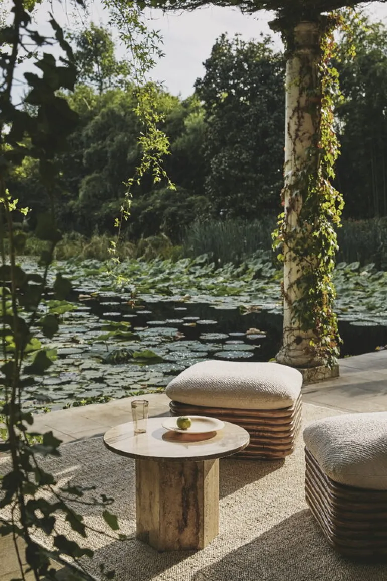 GUBI’s Bohemian ottoman is a perfect example of designer Gabriella Crespi’s desire to create furniture that seamlessly moves from indoor to outdoor spaces. Made of rattan, the ottoman is suitable for the living room as well as for the balcony or covered terrace or patio – although it is not advisable to leave rattan furniture in the rain or scorching sun. The ottoman is upholstered in Dedar’s top-quality outdoor fabric with diagonal bouclé-style stripes.