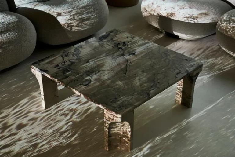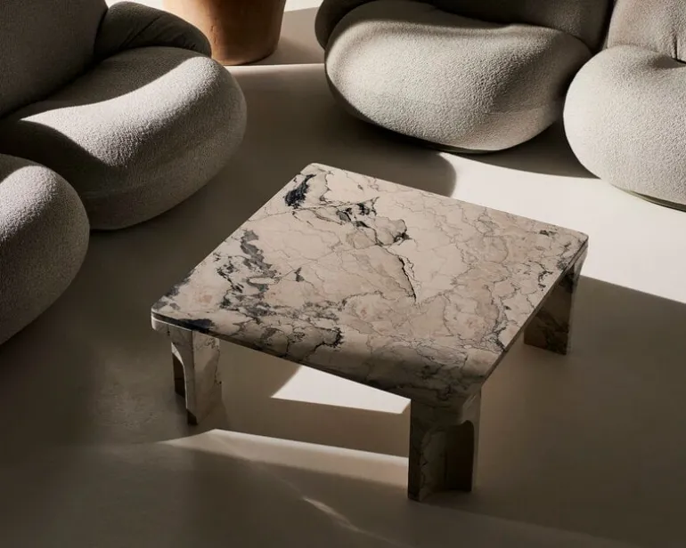 The square-shaped Doric table is made of limestone, which has been used as a building material since ancient times. As limestone is a natural material, the colors and textures on the table are always different, making each Doric coffee table a unique piece with no other exactly the same. The sculpural table will find a place in both the home living room and public spaces and is guaranteed to delight all who see it.