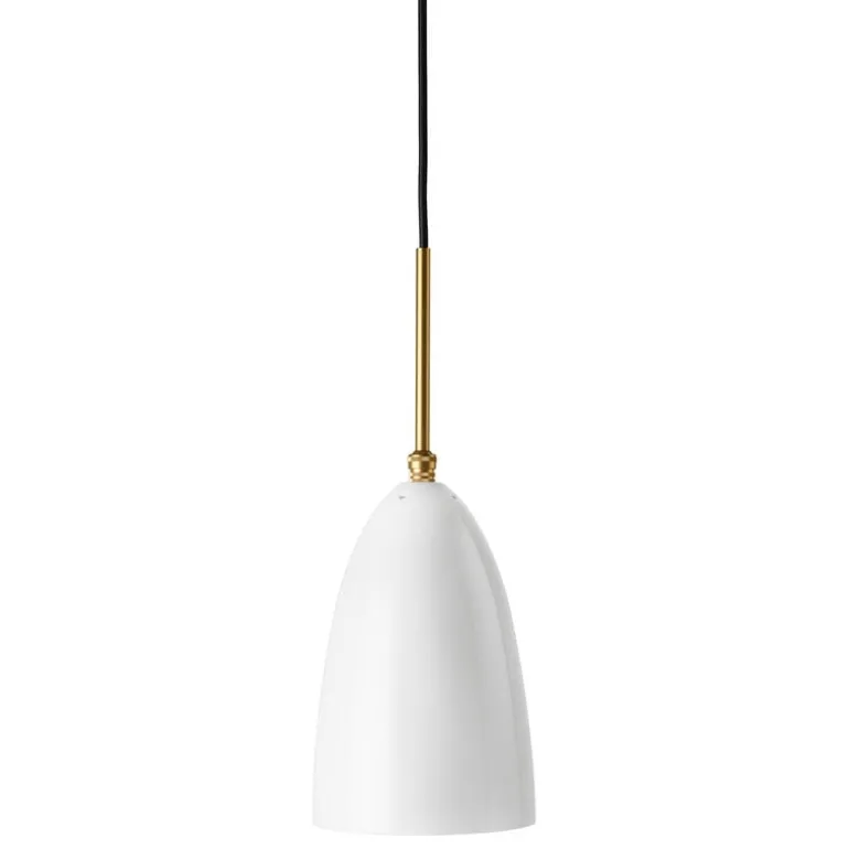 GUBI’s Gräshoppa pendant is based on a luminaire designed by Greta Magnusson. The original Gräshoppa was first introduced as a floor lamp in 1947 and reissued in 2011. The Gräshoppa ceiling lamp features the same timelessly beautiful bell-like shade as the floor lamp, made of polished steel. Brass details complete the pendant’s luxurious look. The beautiful ceiling light is ideal for a home kitchen or a dining area and looks great in public spaces such as restaurants, hotel lobbies or conference rooms as well.