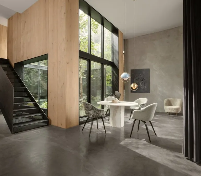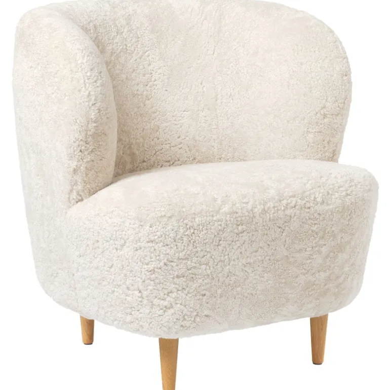 The Stay lounge chair by GUBI has a gracefully sculptural design that invites you to stay and relax. Designed by Space Copenhagen, the Stay lounge chair is both reduced and characterful at the same time, and its precise, straight lines are softened by rounded corners. The lounge chair, upholstered with soft, curly sheepskin, is equally well suited for home and public use.
