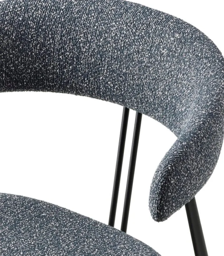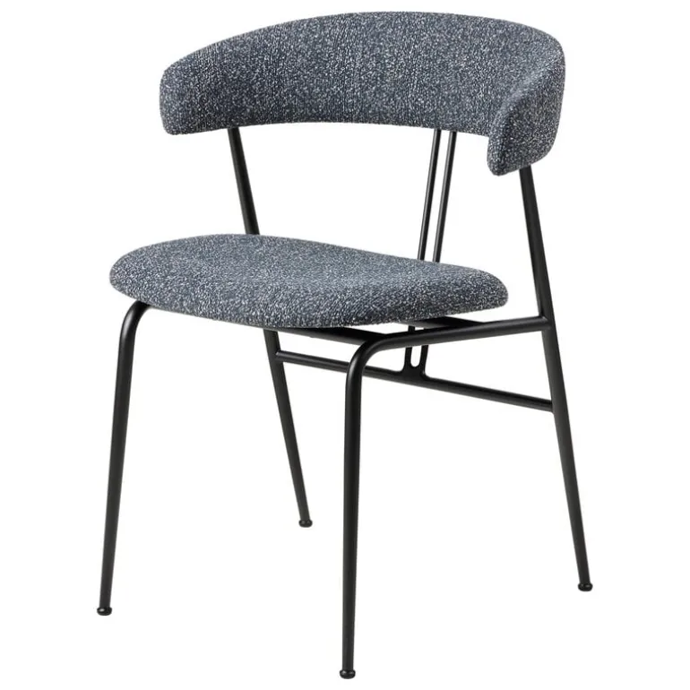 GUBI’s Violin chair, designed by studio GamFratesi, charms with its pure minimalist silhouette, and gentle curvy details. The name of the dining chair refers to two parallel lines on the back resembling the strings of a violin. The powder-coated steel frame and the slender, tapered legs hold the embracing backrest that supports the arms. The contemporary and light appearance of the chair suits well to be deployed in groups around the dining table and the seat provides a comfortable position during meals as well as socializing.