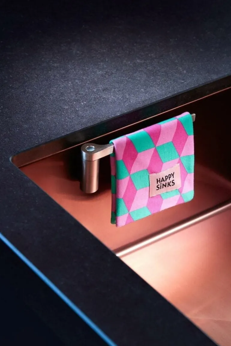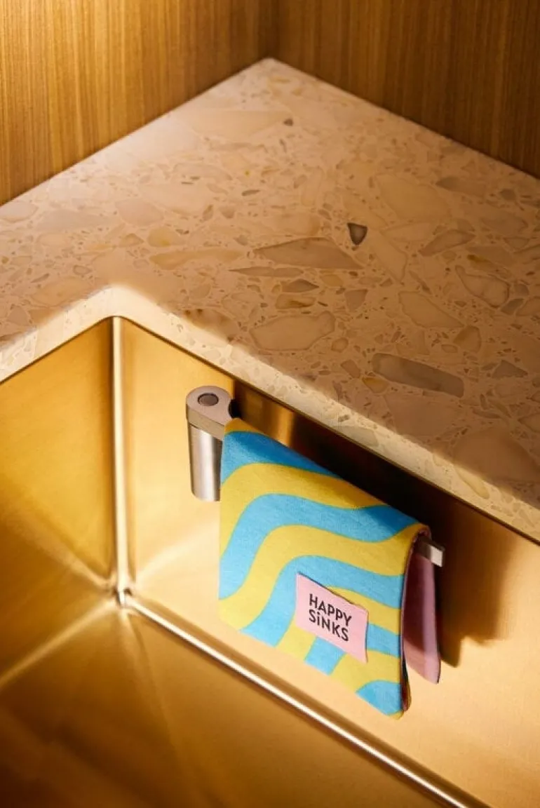 The Happy Sinks dishcloth holder allows you to hang dishcloths and kitchen towels conveniently on the side of the sink. This way, the clothes dry quickly and hygienically, and you don’t have to store them on the tap anymore. The magnetic, rotating holder is easy to attach to any metal sink without tools. It is also suitable for composite sinks with a thickness of max. 0.2 x 0 in (5 x mm. mm).