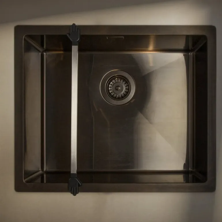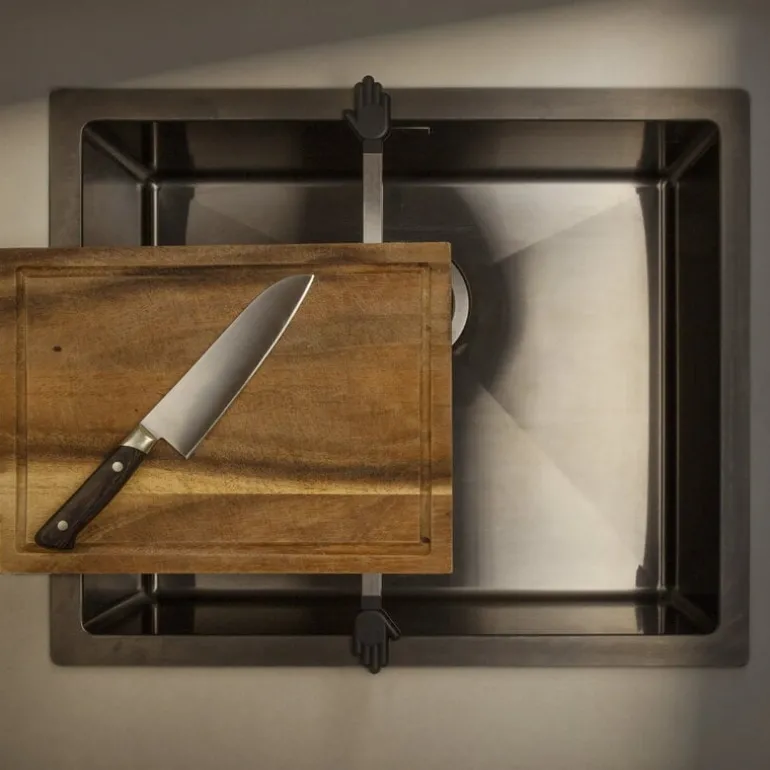 Happy Sinks’ Wunderbar is the always-needed extra pair of hands in the kitchen, conveniently coming to the rescue when needed the most. Made of a steel bar and featuring small silicone hands, the Wunderbar fits perfectly over the sink, providing support when pouring boiling water from a pot. You can also place a chopping board on the sturdy metal handle, making Wunderbar a handy addition to smaller kitchens. Please remember that, like real hands, Wunderbar is not dishwasher safe and should be cleaned by hand wash.