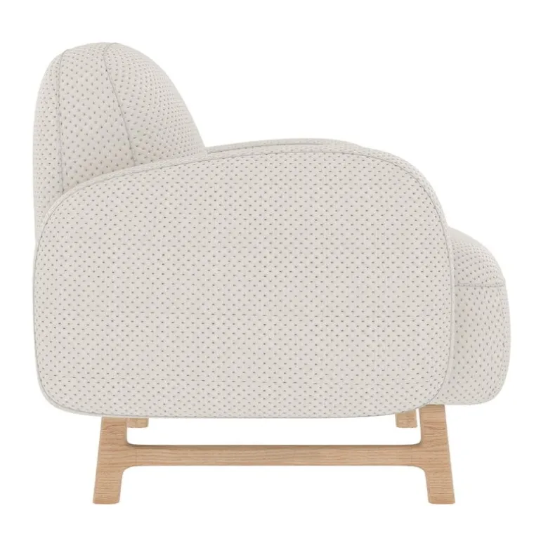 The playful chair is part of the Auguste collection designed by Tristan Lohmer for Hartô. The series’ armchairs and sofas combine the typical elements of his designs: they are at once strikingly sculptural and monumental, yet invitingly comfortable to sit on.