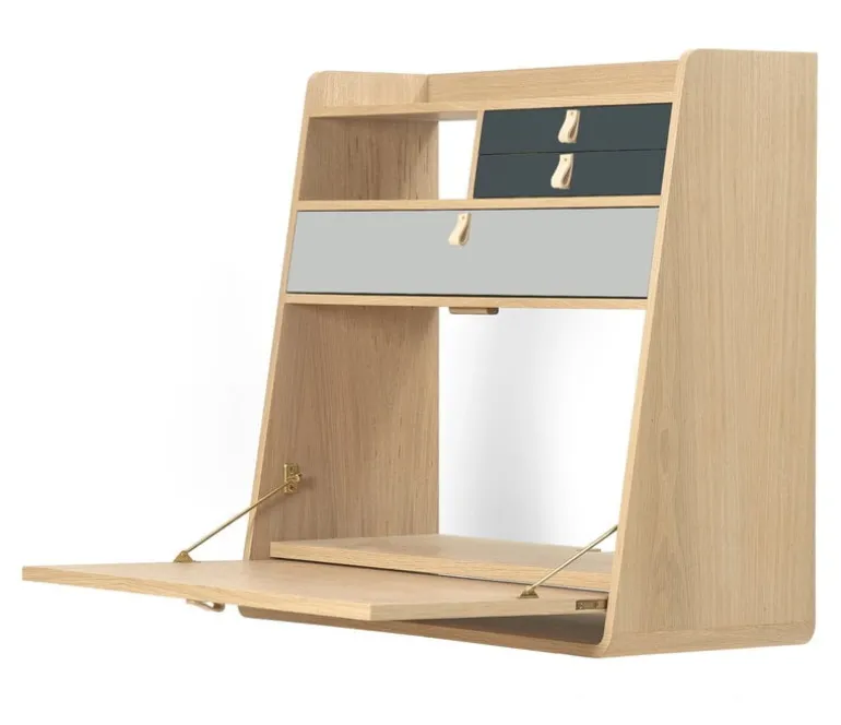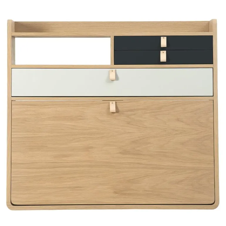 Hartô’s Gaston wall desk will delight you with its versatility. The stylish storage unit can be used in its traditional role as a shelf or, more surprisingly, as a desk. The folding tabletop is easy to pull out and close when it is no longer needed. The Gaston wall desk is ideal for a smaller home office but also works well as additional wall space in the company’s office. Shelves and three drawers ensure there’s plenty of storage space for important papers, magazines and other small items. Designed by Florence Watine, Gaston’s look is completed by the elegant leather pulls on the drawers.