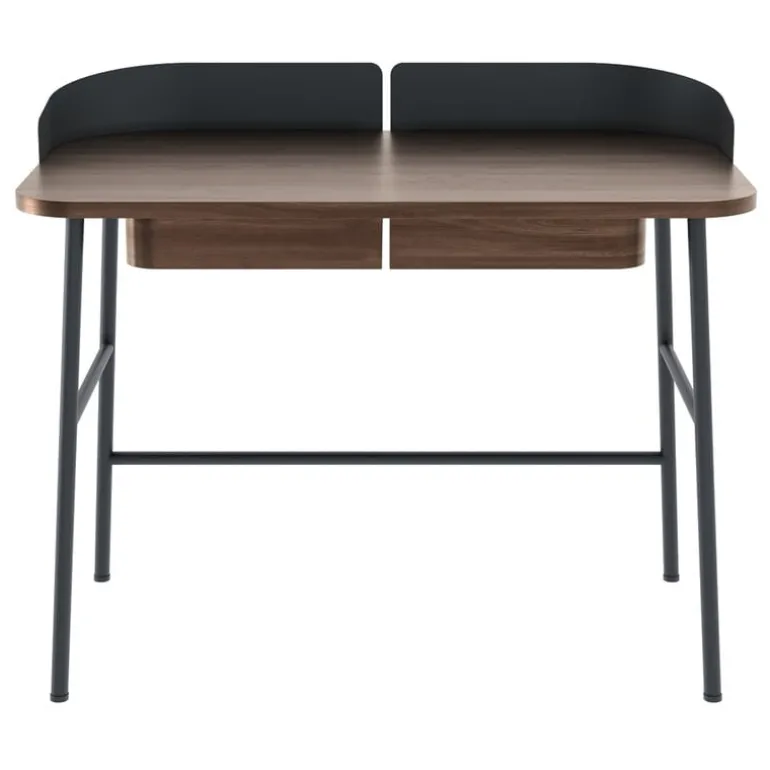 Designed by Pierre-François Dubois for the French brand Hartô, Victor is an attractive and characterful desk consisting of a matt-painted metal frame and walnut-veneered tabletop. Its sleek design and moderate width make it excellent for small working areas, but its large depth provides plenty of working space. The distinctive and practical design is perfected with two drawers and a metallic edge that prevents pens and other items from falling on the floor. Victor has been manufactured in Europe.