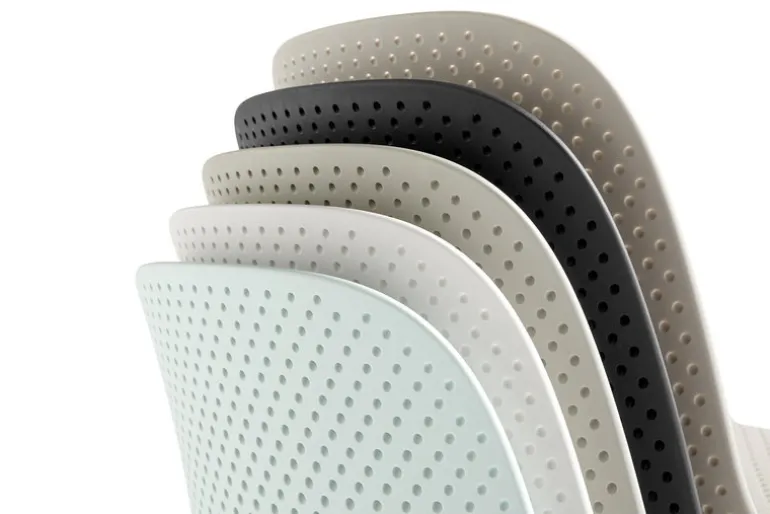 HAY’s 13Eighty, designed by the Dutch duo Scholten & Baijings, is a lightweight and durable chair especially for outdoor use. 13Eighty chair consists of a powder coated steel frame and perforated polypropylene seat, which has both an esthetic and functional quality – the small perforations add lightness and playfulness to the chair’s visual expression, and also let the rainwater drain off the seat. 13Eighty makes an attractive garden chair, and its light and simplistic shape is perfect for compact balconies and terraces as well. The stackable chairs are easy to store in a small space when needed. 13Eighty chair is available in several stylish finishes, with or without armrests.
