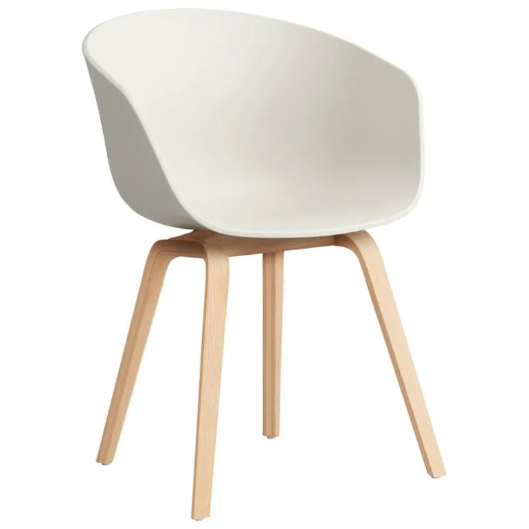 About A Chair AAC22 is part of HAY’s About A collection, created in close collaboration with designer Hee Welling, featuring chairs with outstanding simplicity and combinability. The chair’s streamlined seat is crafted from recycled polypropylene, and its wooden frame is made from oak and finished with a soap treatment. In 2023, HAY updated the entire About A Collection with shells made from 100 % post-consumer plastic.