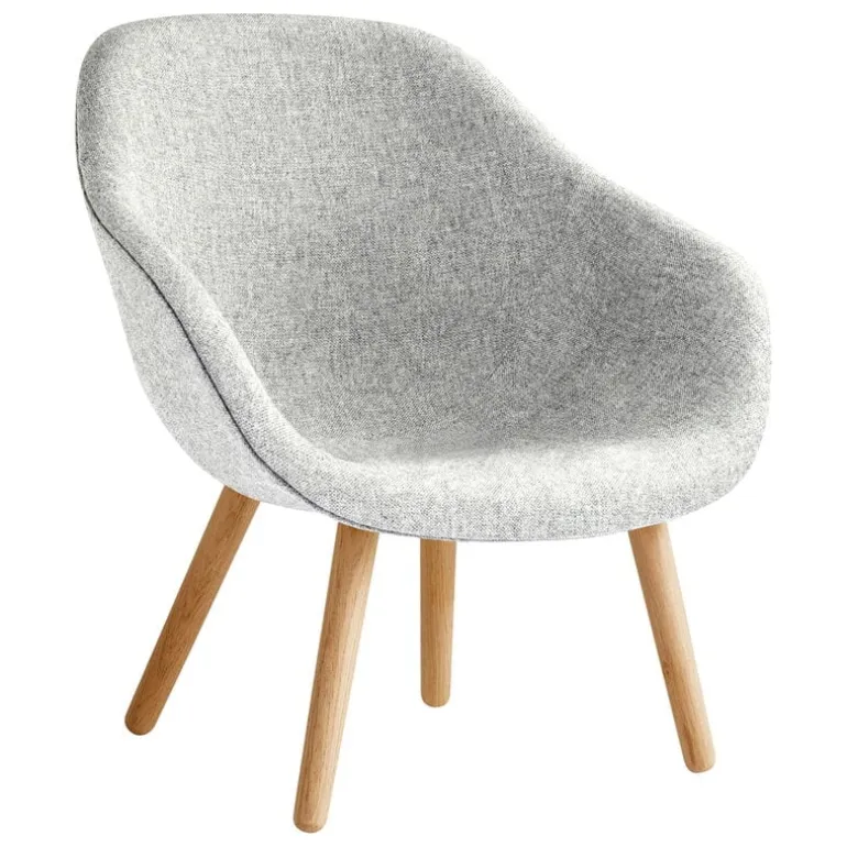 About A Lounge Chair AAL82 by HAY combines a sleek oak frame with a streamlined polypropylene seat upholstered in elegant and durable fabric.