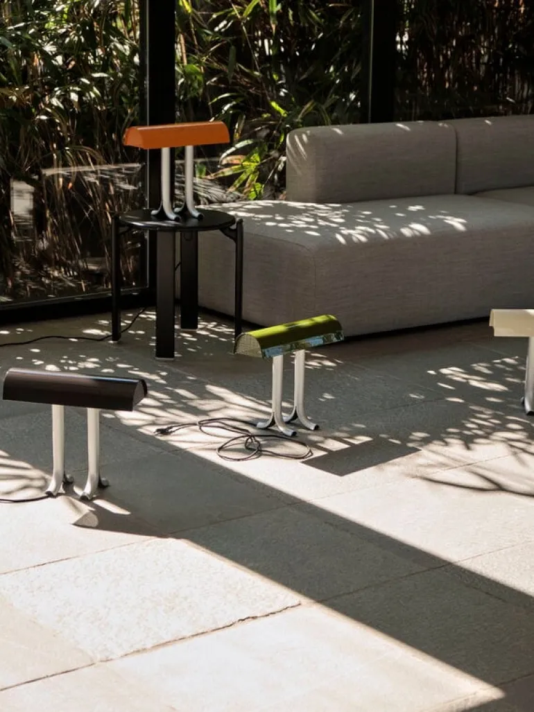 The shape of HAY’s Anagram table lamp is recognizable and surprising at the same time. Its long, curved shade and glossy surface remind the viewer of the reading lights familiar from banks and libraries. However, Anagram’s two stylish aluminum legs update the classic luminaire design with a modern twist. Designed by Sam Weller, the table lamp is perfect for the home office, bedroom or living room to brighten up the interior – and of course, it’s also a great choice for banks and libraries!