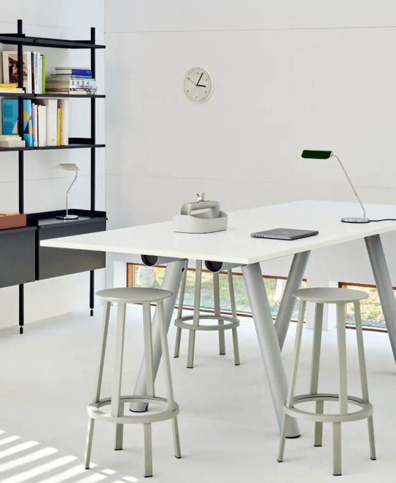 The HAY Apex desk lamp represents British designer John Tree’s contemporary interpretation of the classic banker’s light – you know those green-shaded lamps you would imagine in an old mahogany-paneled study. In Apex, Tree has skillfully blended these traditional references with a modern design language: the lamp features a slender silhouette and a folded metal shade that resembles a peaked roof, which also serves as the muse for the lamp’s name. What’s more, the shade boasts a 360-degree rotation capability, enabling users to effortlessly adjust the light to suit their specific needs.