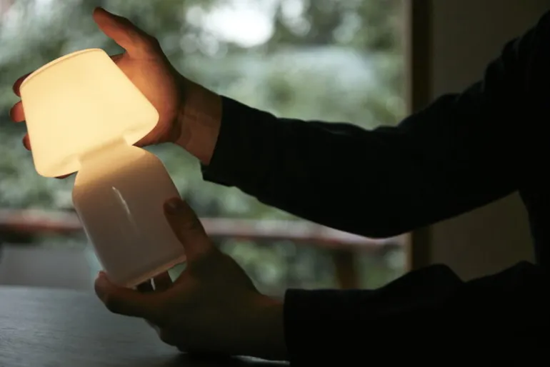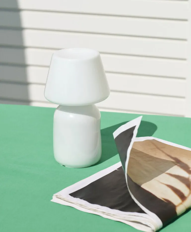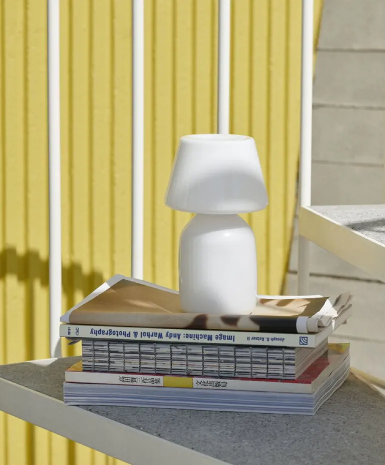 HAY’s Apollo Portable table lamp is a delightful combination of traditional and modern elements. Created by Danish design agency Studio 0405 and designer Nikolaj Lorentz Mentze, the Apollo luminaire was originally designed as an oil lamp for the Apollo Bar & Kantine restaurant in Copenhagen, after which it is also named. The hand-made table lamp is made entirely of opal glass, filtering the light into a soft and inviting glow. Apollo Portable creates a comforting illumination without glare and is suitable for a wide variety of spaces, from private homes to offices and cafés – and you can also take the cordless table lamp with you to the garden or terrace, or a midnight picnic!