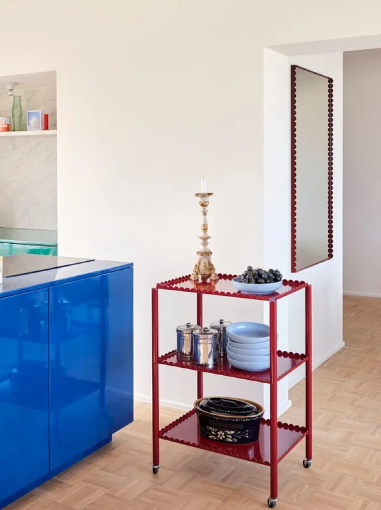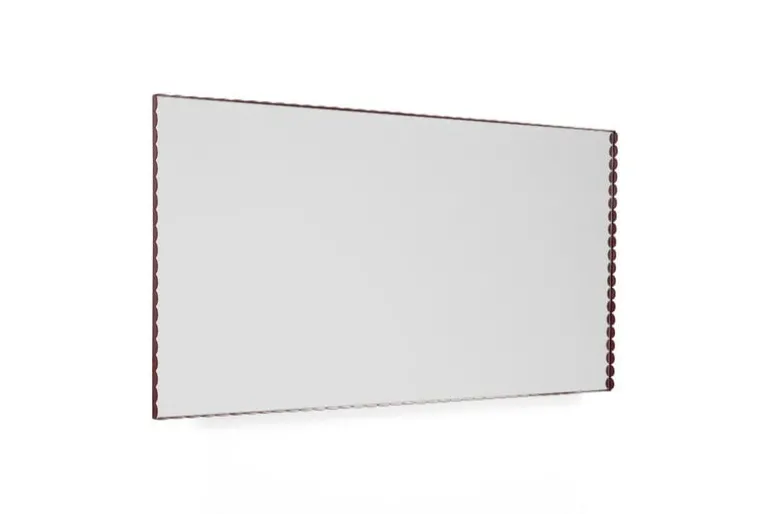 The Arcs wall mirror is adorned with subtle burgundy frames with a design that may already be familiar to you from the candlesticks, vases and lamps in HAY’s Arcs collection. Designed by Muller Van Severen, the Arcs series is based on simple oval shapes: when joined together, the pieces create captivating silhouettes where soft and straight lines meet. The objects in the collection are available in both painted and mirrored finishes, so you can create a vibrant but coherent whole by mixing different shades and finishes together.