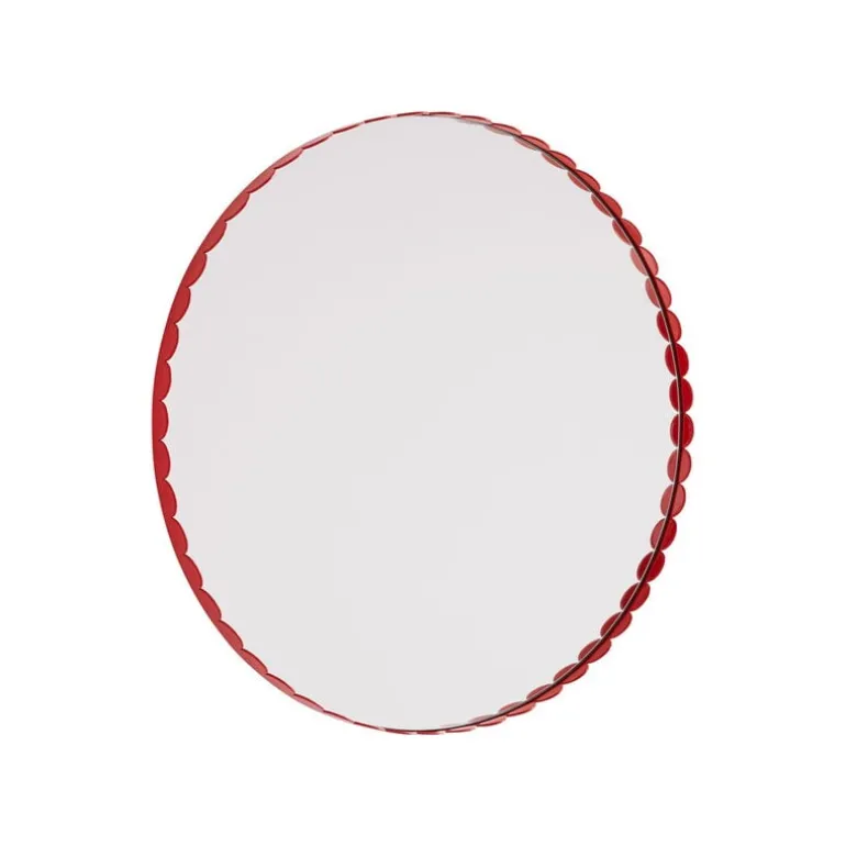 The Arcs wall mirror is adorned with subtle red frames with a design that may already be familiar to you from the candlesticks, vases and lamps in HAY’s Arcs collection. Designed by Muller Van Severen, the Arcs series is based on simple oval shapes: when joined together, the pieces create captivating silhouettes where soft and straight lines meet. The objects in the collection are available in both painted and mirrored finishes, so you can create a vibrant but coherent whole by mixing different shades and finishes together.