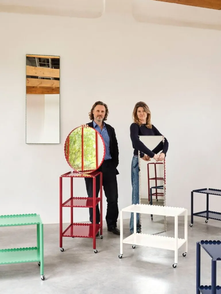Designed by Muller Van Severen, the Arcs series is based on simple oval shapes: when joined together, the pieces create captivating silhouettes where soft and straight lines meet. The objects in the collection are available in a variety of finishes, so you can create a vibrant but coherent whole by mixing different shades and finishes together.