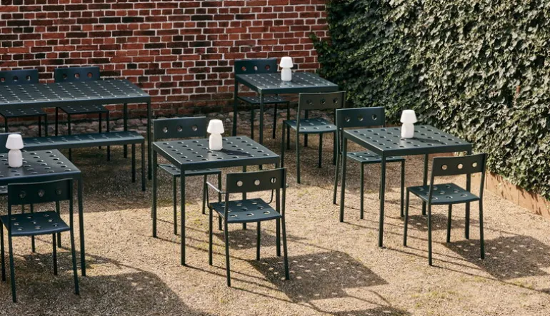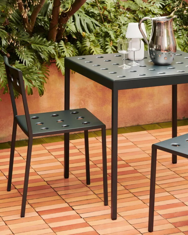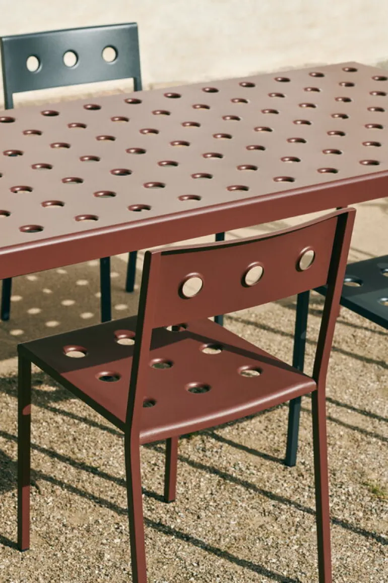 HAY’s Balcony chair is part of a clever collection of outdoor furniture designed by the Bouroullec brothers. Made of thin steel sheet, the elegant Balcony outdoor dining chairs are incomparably light and easy to move, and they can also be stacked on top of each other to save space – a perfect addition to the balcony, garden or patio. Featuring a weather-resistant coating the Balcony collection is as carefree as it looks.
