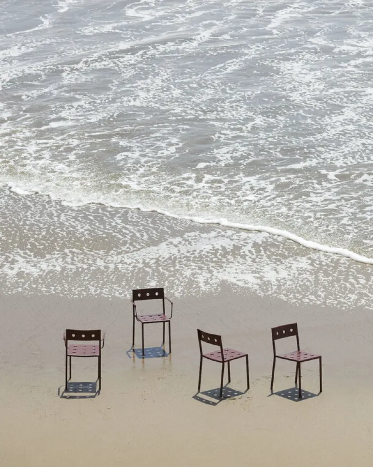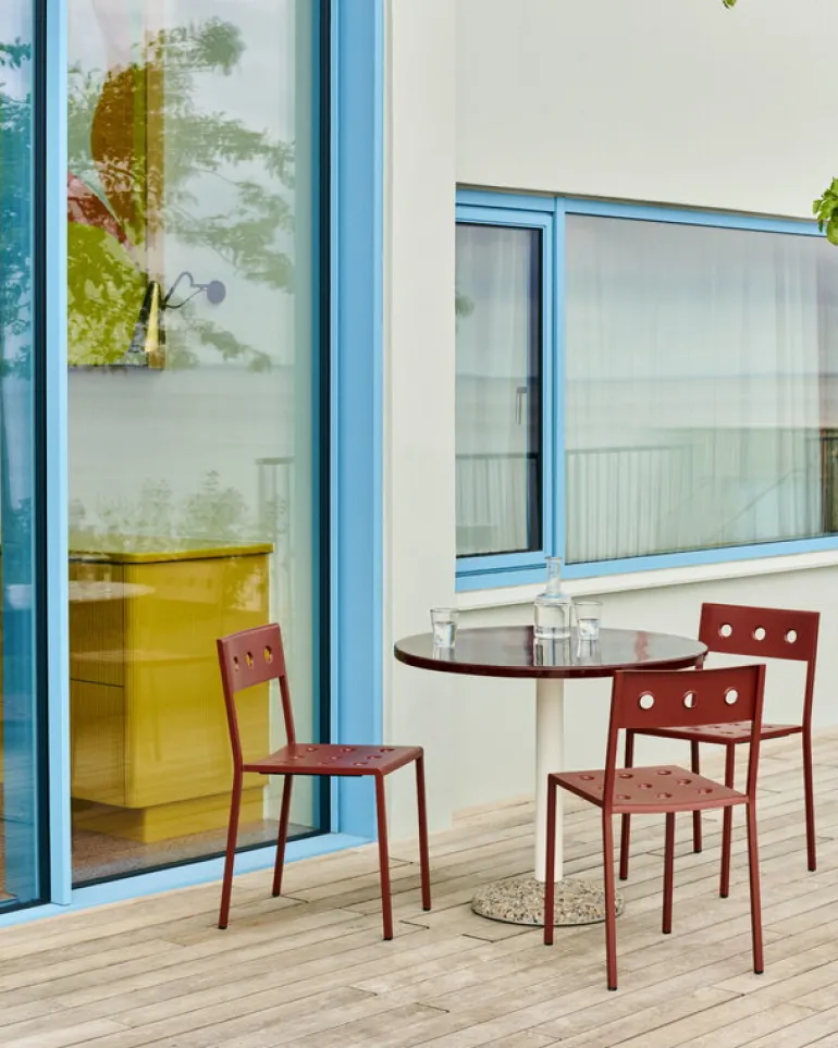 HAY’s Balcony chair is part of a clever collection of outdoor furniture designed by the Bouroullec brothers. Made of thin steel sheet, the elegant Balcony outdoor dining chairs are incomparably light and easy to move, and they can also be stacked on top of each other to save space – a perfect addition to the balcony, garden or patio. Featuring a weather-resistant coating the Balcony collection is as carefree as it looks.