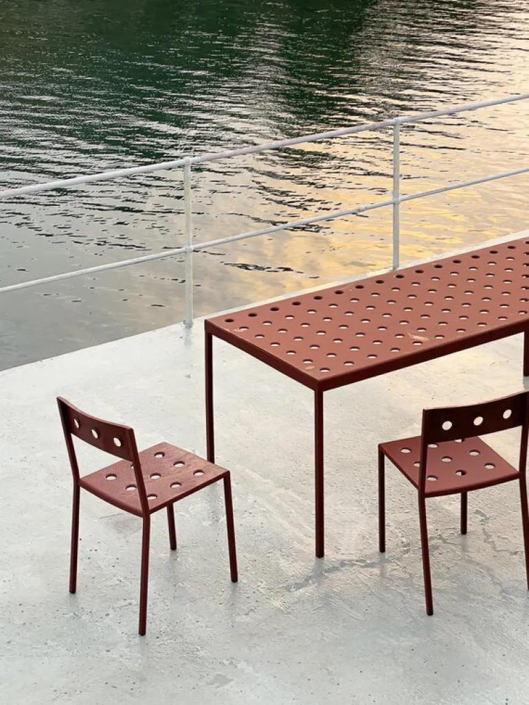 HAY’s Balcony table is part of a clever collection of outdoor furniture designed by the Bouroullec brothers. Made of thin steel sheet, the elegant Balcony outdoor dining tables are incomparably light and easy to move – a perfect addition to the garden or a patio. Featuring a weather-resistant coating the Balcony collection is as carefree as it looks.