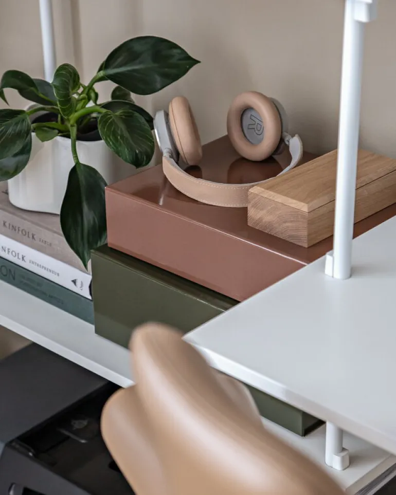 HAY’s Color Storage boxes make decluttering fun with their bright palette of colors. Made of sturdy cardboard, the Color Storage boxes feature a convenient magnetic closure. The fun boxes are perfect for storing and organizing office supplies, jewelry or kids’ toys, among other things. Pick and mix different colors and sizes and create a rainbow of Color Storage boxes, or tone things down with a monochrome combo.
