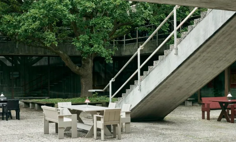 The Crate terrace bench is based on the chair originally designed by Dutch architect and designer Gerrit Thomas Rietveld in 1934. At that time, the chair was made from leftover wooden shipping crates, but the Rietveld Originals and HAY reinterpretation uses lacquered pine as the material. Finished with a weatherproof coating, the Crate dining bench is ideal for outdoor spaces from the terrace to the garden and balcony.