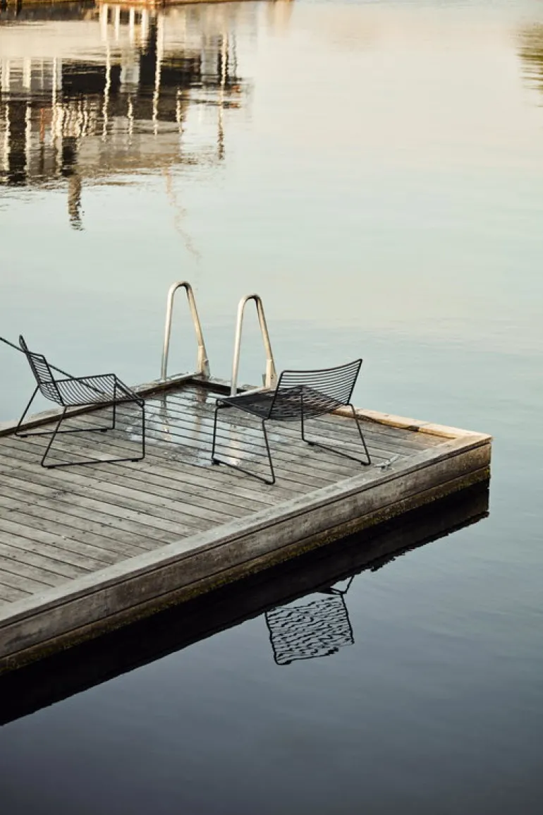 HAY’s Hee lounge chair is a contemporary design classic with an airy metal structure that resembles a three-dimensional line drawing. Made of electro-galvanized steel wire and finished with a durable powder coating, the Hee lounge chair is suitable for both indoor and outdoor use.
