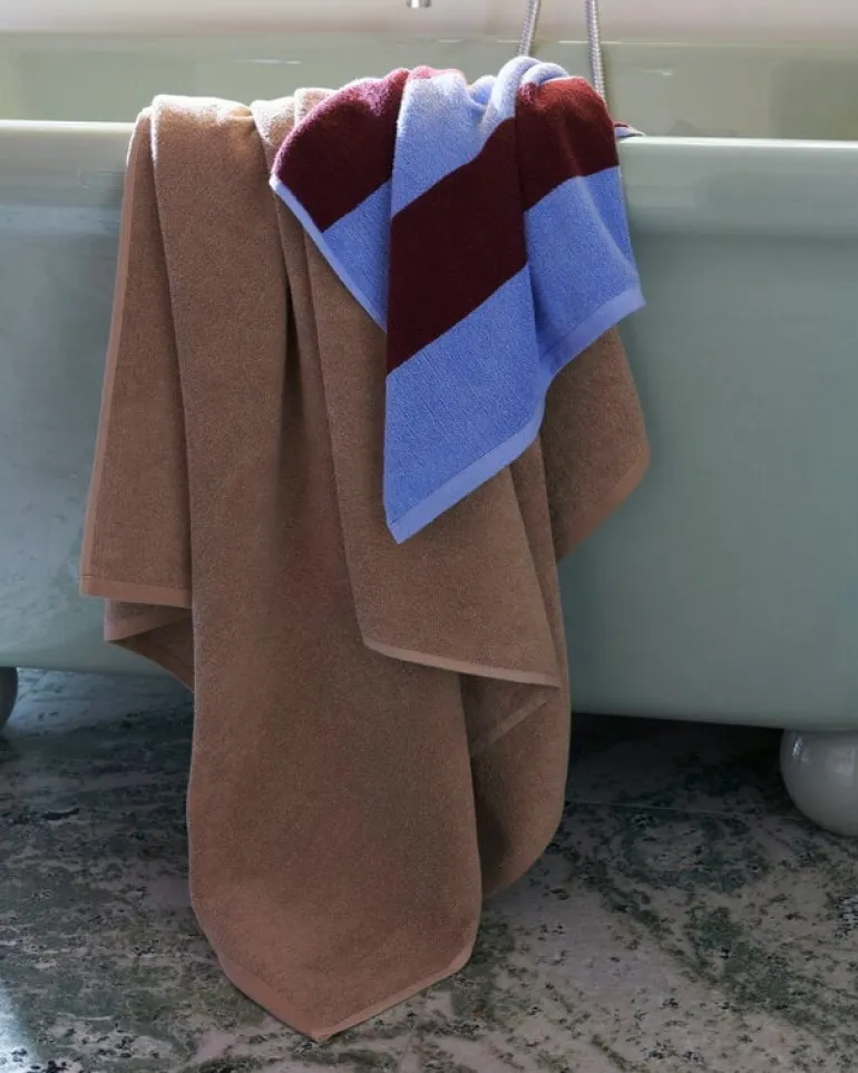 HAY’s Mono bath towel is adorned with a monochrome color scheme enlivened by an embossed HAY logo on one end. Made of durable, certified cotton, the Mono bath towel has a soft and absorbent terrycloth texture that feels utterly lovely on the skin. The Mono collection consists of terry towels for both bathroom and beach use, and their bold and muted colors are also ideal for mixing and matching.