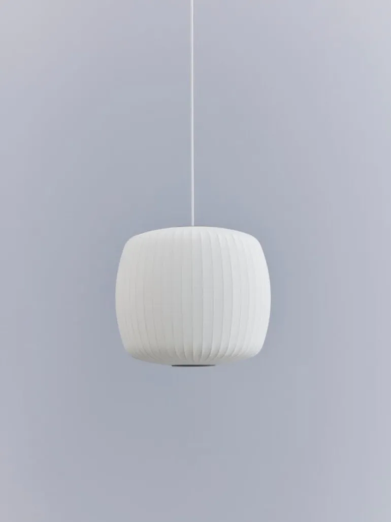 The Nelson Roll Bubble is part of a lighting series designed by George Nelson and produced by Herman Miller in the 1950s. Nelson wanted to purchase a similar Swedish lamp made of silk, but instead, opted for designing his own version of the pendant to save time and money. The lamps in the collection are still manufactured at the same factory that originally started manufacturing them in 1952.