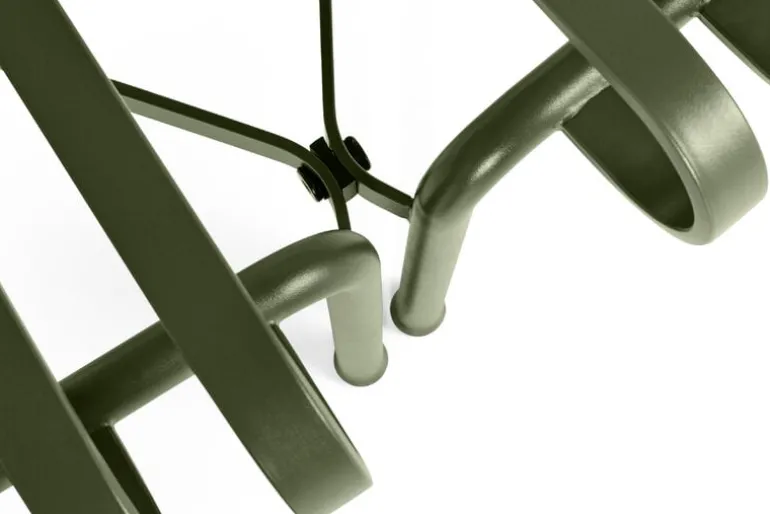 The Palissade outdoor furniture features a strong, graphic design that consists of simple steel tubes and slats. Ronan and Erwan Bouroullec have created a range of simple, balanced pieces that are well suited for terraces, balconies, gardens, cafés and public spaces. The Palissade chairs, tables and benches are sturdy but elegant, and perfect for outdoor use, since wind and water will pass through the galvanized steel frame. The Palissade furniture was designed to age well and its muted color palette adds to the timeless and versatile appearance.