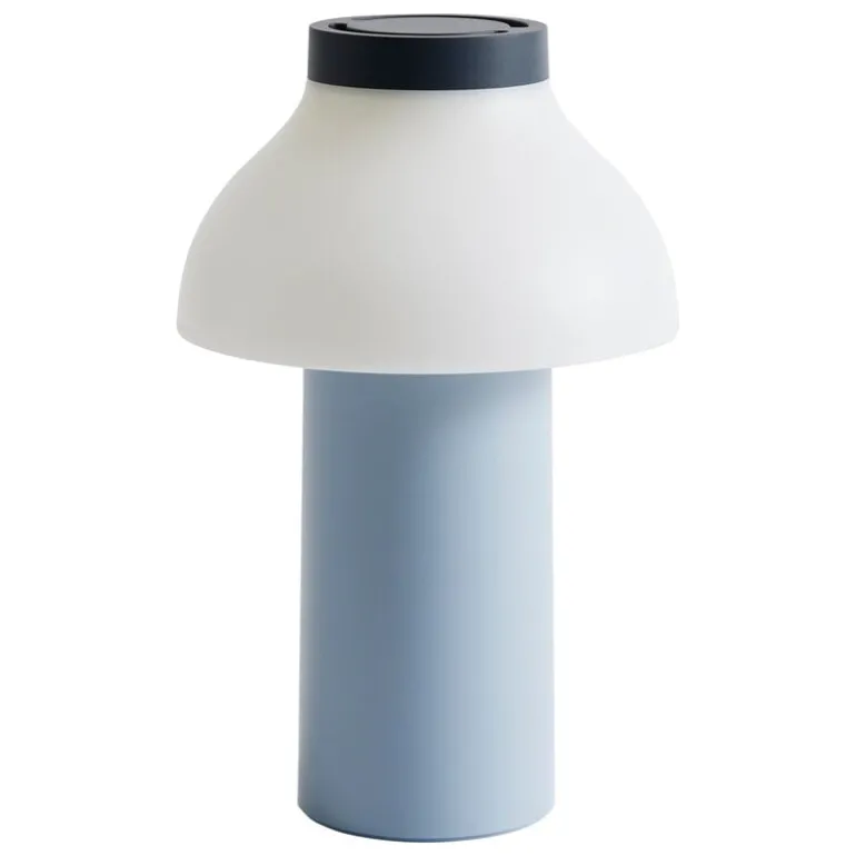 PC Portable lamp NO 2, designed by Pierre Charpin for HAY, is a chargeable table lamp for both indoor and outdoor use. PC Portable will find its place in any room of the house, and the cordless structure makes it ideal for places without electricity, such as cottages, attics, terraces and gardens. Made of consumer-collected plastic with a translucent shade and diffuser, the lamp has an integrated three-position touch dimmer which allows you to alter between bright downlight and soft ambient light. The battery lasts about 10 hours with one charge.