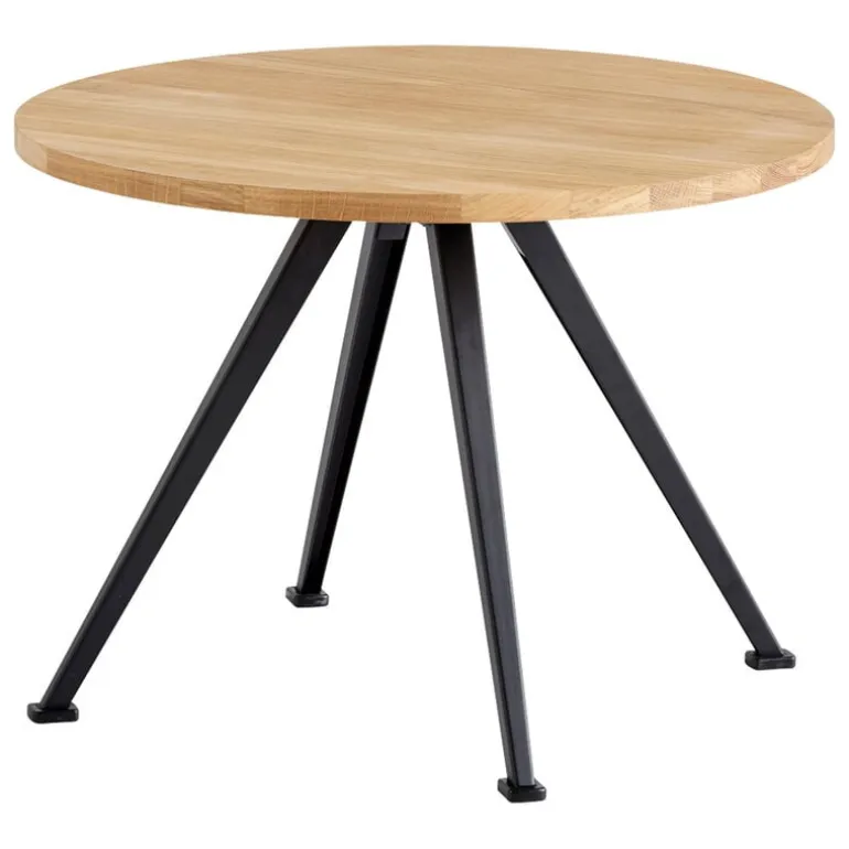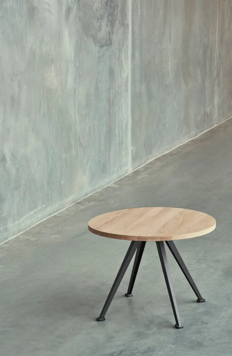 Featuring angular steel frames and sturdy wooden tops, the Pyramid collection embodied the cutting-edge steel design of the 1950s and has maintained its timeless appeal ever since. Over the decades, these pieces have become familiar fixtures in both public spaces and private homes. The reissued furniture by HAY now uses an eco-friendly water-based lacquer.