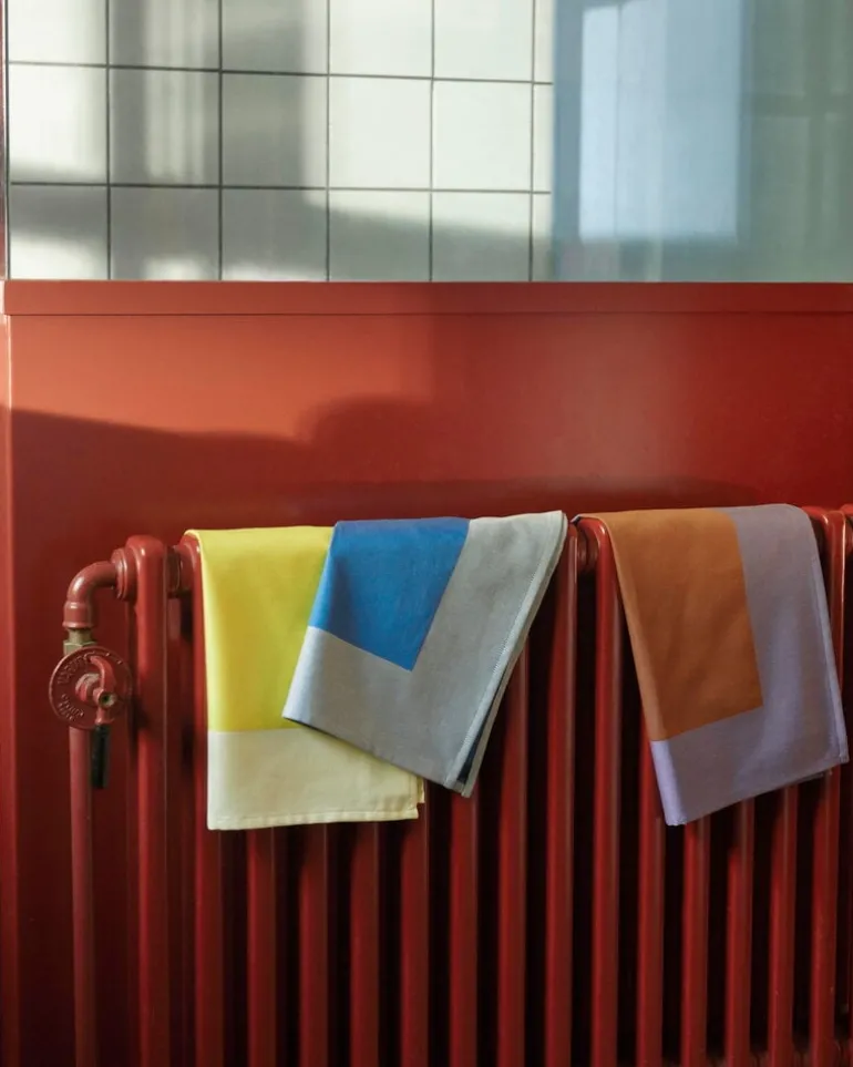The fabric napkin belongs to the Ram collection, created by Serbian designer Ana Kras, which includes textiles that play with contrasting colors. The beautiful hues not only frame each other but also the room – it’s no coincidence that the name of the collection, Ram, means “frame” in Serbian.