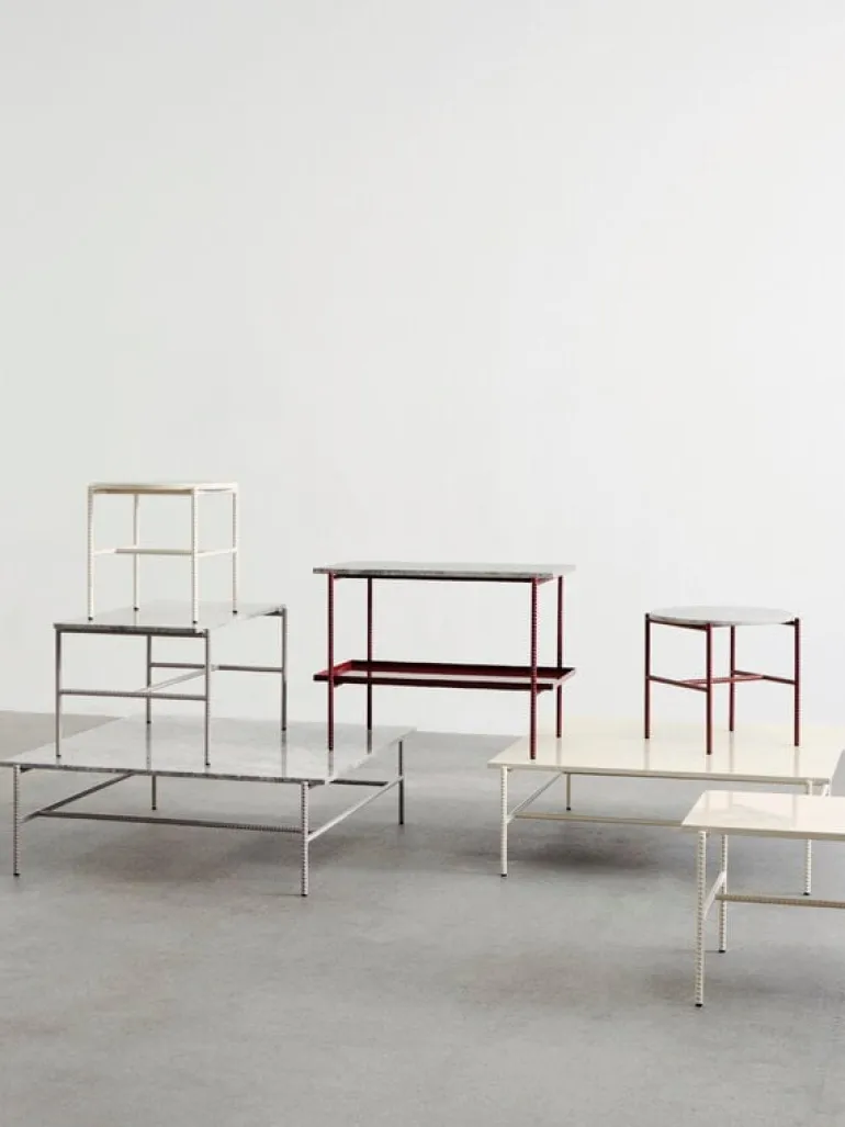 Rebar coffee table by HAY combines an industrial steel bar frame with an elegant tabletop in marble. The union of different shapes and structures gives the Rebar table an interesting, distinctive character, and the robust materials make it stand the test of time. Designed by Sylvain Willenz, the coffee tables and side tables of the Rebar collection are designed for both home use and public environments.