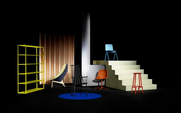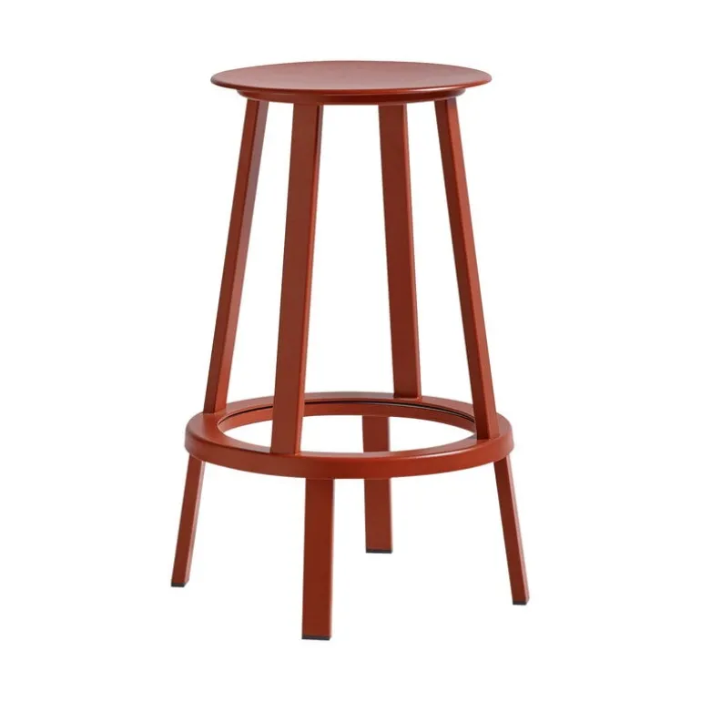 Revolver bar stool by HAY consists of two parts: the sturdy bottom part and the upper seat part that turns 360 degrees. The rotating seat with foor rest is convinient in everyday use. The Revolver bar stool is made of powder coated steel.