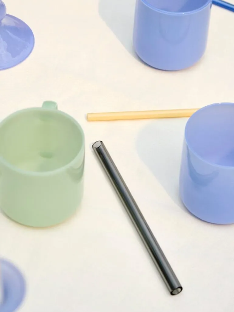 HAY’s Sip Cocktail straws can be used over and over again. Made of durable borosilicate glass, the colorful straws can be used even for hot drinks. The Sip Cocktail straws are slightly shorter so they are ideal for drinks served from short cocktail and tumbler glasses. The package includes four reusable straws and a convenient brush for cleaning them.
