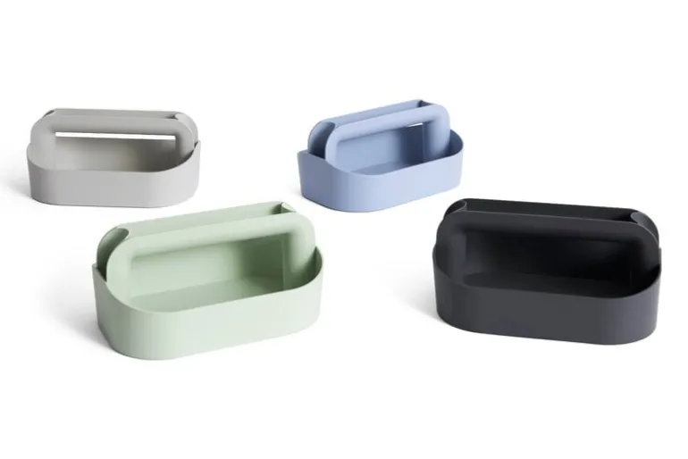 HAY’s Tool Box is designer Shane Scheck’s modern interpretation of a traditional toolbox. The streamlined plastic box offers a helpful way for storing and arranging all kinds of small items from tools to office supplies and sewing equipment. Tool Box’s handle not only helps to move things from place to another, but also forms three small extra compartments at the sides and top.