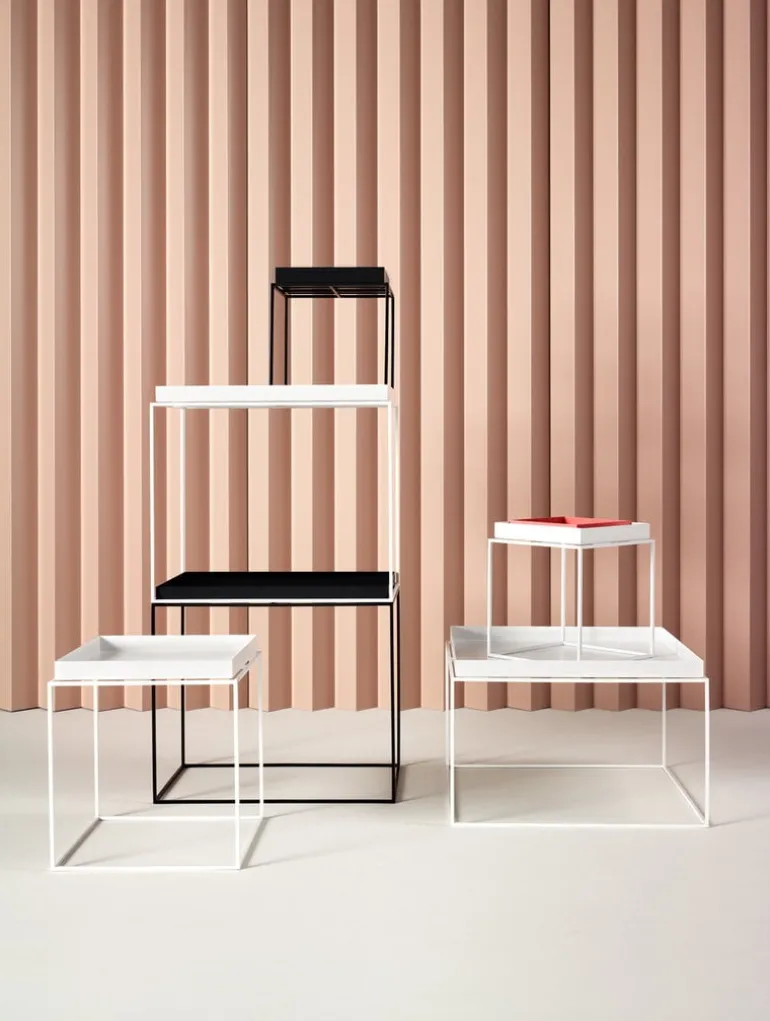 HAY’s Tray tables will bring a new look to any living room. Large, traditional sofa tables can be replaced by attractive groups of smaller Tray tables. Tray is composed of a simple powder-coated steel frame and a removable tray. The tables can be used as sofa or side tables in the living room, nightstands in the bedroom – anywhere extra table space is needed. Combine Tray table with smaller functional HAY trays to create a monochrome look or to add a touch of color.