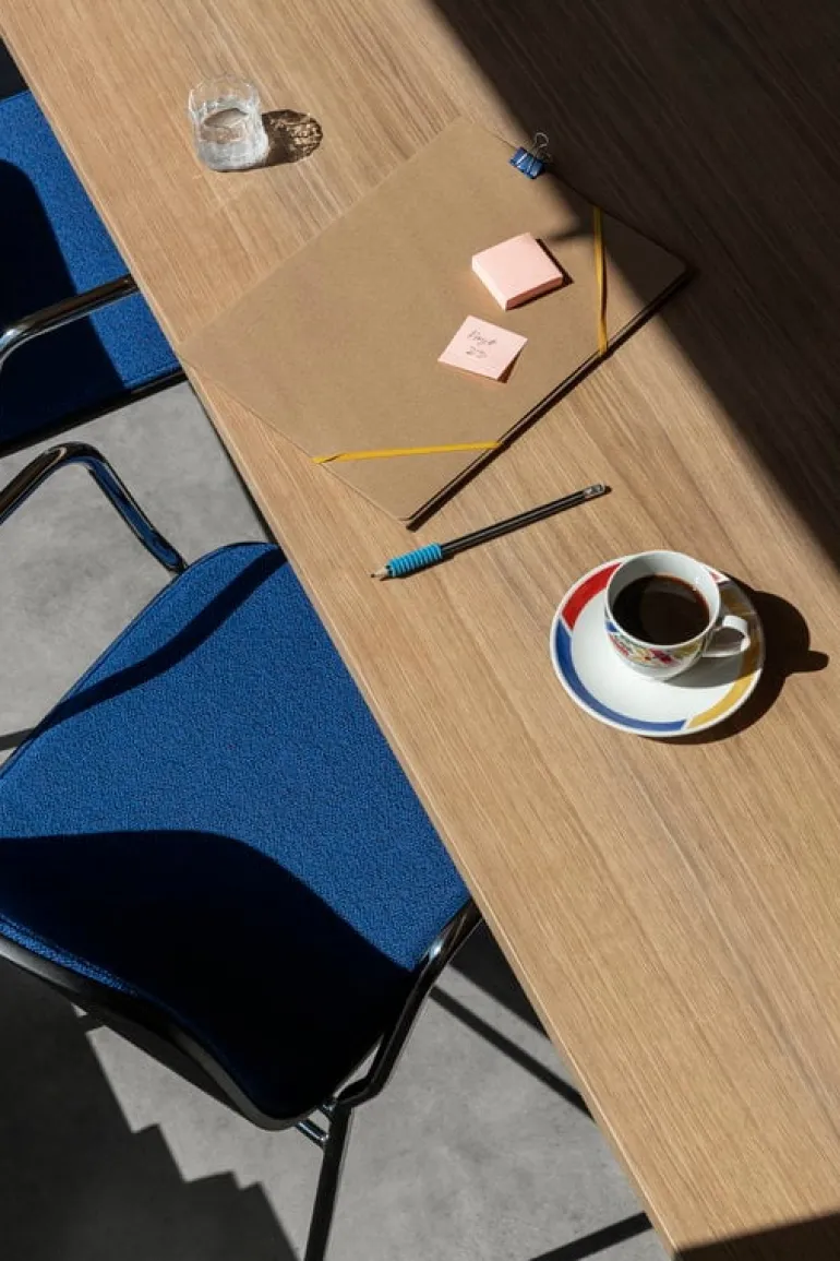 Hem’s Alle conference table is the epitome of modern Nordic design in which elegance and functionality go hand in hand. The table has an appealingly minimalist form without compromising on distinctiveness, thanks to its rounded edges and unusually wide legs. The wood grain, drawing its unique patterns on the surface of the tabletop, adds a touch of natural charm to the table’s reduced appearance.