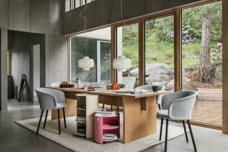 Hem’s Bookmatch dining table, designed by Philippe Malouin, is a tribute to traditional carpentry and artisanship. The table’s oak veneer surfaces are adorned with natural wood grain patterns that beautifully emphasize the simple but considered and skilfully executed structure of the table. Bookmatch’s raw and robust look is guaranteed to catch the eye in both modern dining areas and office meeting rooms.