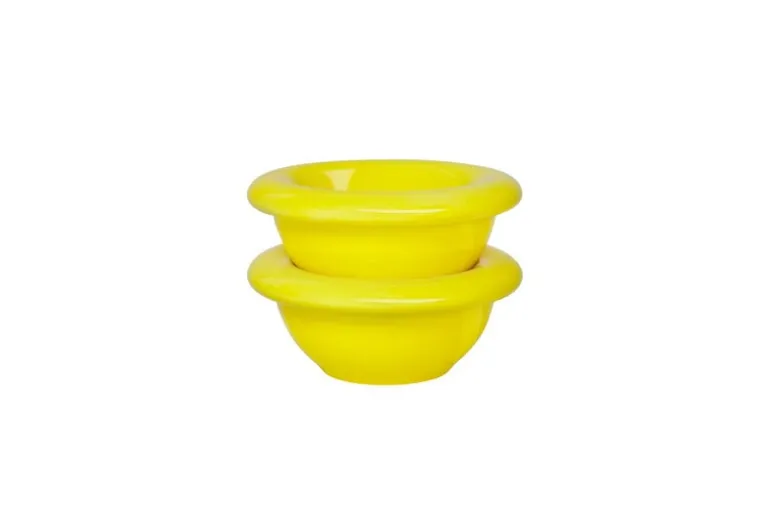 Hem’s Bronto egg cup is part of a tableware collection that is not shy about its existence. Designed by Supergroup, the egg cup has a recognizably bulky and chunky design – dinosaur-like, one might even say. So no wonder the ceramic dinnerware has actually got its name from the giant Brontosaurus! Exaggerated curves bring the glossy glazed cup to life and vibrant colors put a smile on your face at the breakfast table. The package contains two bright yellow egg cups.