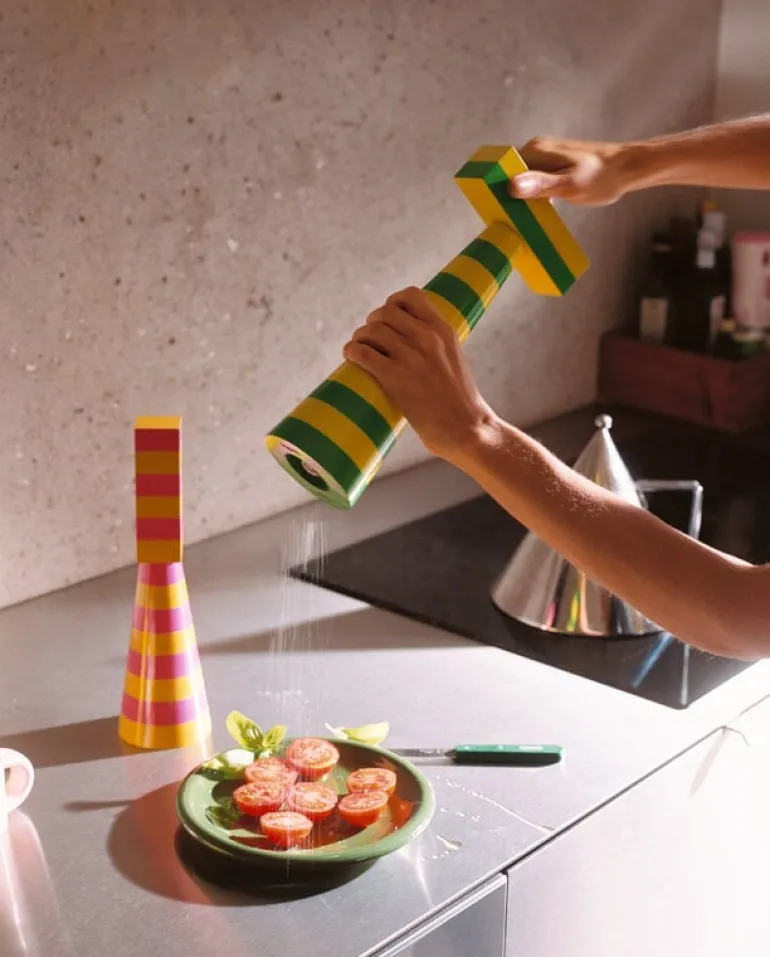 Hem’s Molino grinder blurs the line between the everyday object and sculptural decoration: the striped spice grinder happens to be both. Grinder’s playful design and bright colors were inspired by the energy and vitality of designer Fabien Cappello’s homeland, Mexico. The Molino spice grinder is made from solid beech and painted by hand which gives each piece a unique look and character. A glossy lacquer finish completes the sophisticated yet relaxed cheerful look. The Molino spice grinder brings life and joy to any table setting – this spice grinder is so much fun to use that food might be in danger of becoming too spicy!