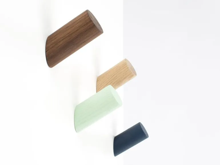 The Peg wall hook by Hem charms with its simple, diagonal shape and vivid surface of wood. Designed by Jonah Takagi, the Peg hooks can be used in any room, from the hallway to the kitchen, and they look great both alone and in groups. Inside the solid wood hook is an aluminum mechanism that makes wall-mounting easy.