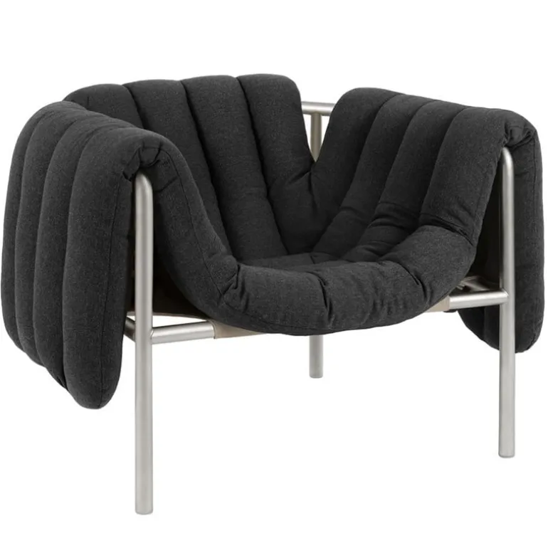 Hem Puffy lounge chair, anthracite - stainless steel