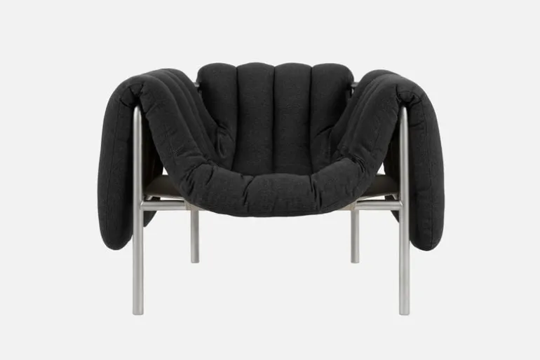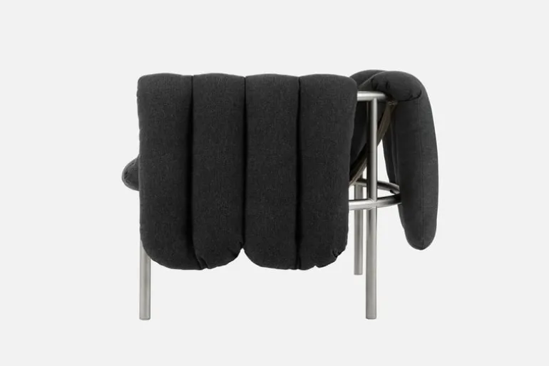 Hem Puffy lounge chair, anthracite – stainless steel