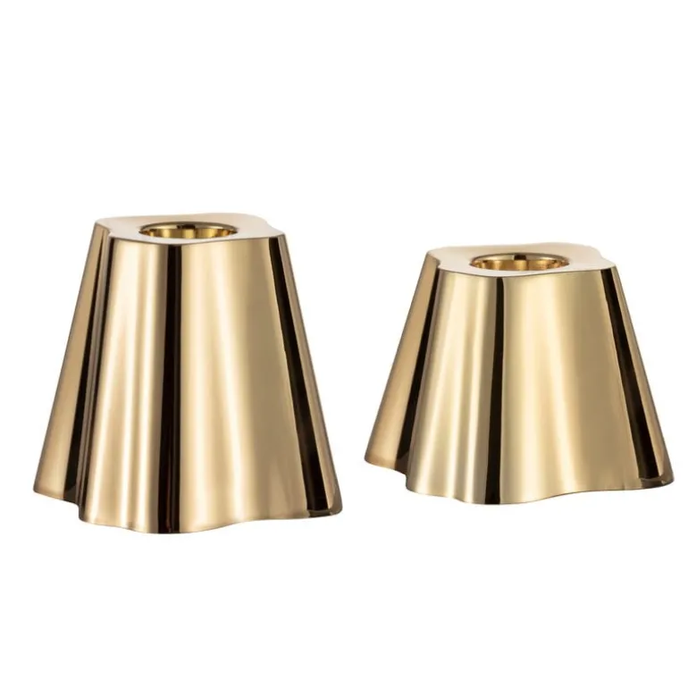 Iittala’s Aalto candleholders mimic the organic shapes of the Aalto collection. The brass-colored candleholders amplify the warm glow of the candles, making them a lovely addition to table settings as well as a decorative item on the windowsill, coffee table or shelf. The set includes two candleholders in different sizes.