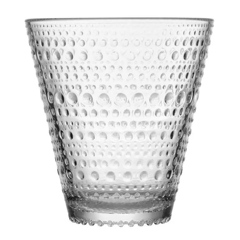 Iittala’s Kastehelmi tumblers are part of the popular glass collection designed by Oiva Toikka. In 1964 Toikka’s aim was to design a pattern that would conceal the joint marks in pressed glass. The result was Kastehelmi, Finnish for dewdrop, that features delicate glass droplets arranged in a series of rings. Kastehelmi became one of Toikka’s most beloved series of glassware and it was manufactured until 1988. The most popular items were brought back to Iittala’s production in 2010. Kastehelmi plays with light in the most beautiful way and suits any table setting. The 10.14 fl oz (3 dl) tumblers come in a set of two.